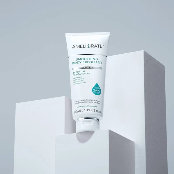 The AMELIORATE Smoothing Body Exfoliant is designed to reveal even, radiant-looking skin.