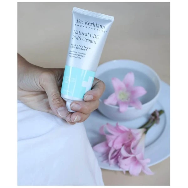 CBD topical cream that features an uplifting scent of Vanilla and Verbena to help ease and soothe monthly. Dr. Kerklaan Therapeutics Natural CBD PMS Cream has been Doctor-Designed and can be applied to the lower back and abdomen. It is perfect for those looking to relax, calm and find serenity — and is even more effective when combined with soothing rituals such as yoga or after a warm bath. A natural alternative when you’re looking to tackle PMS.