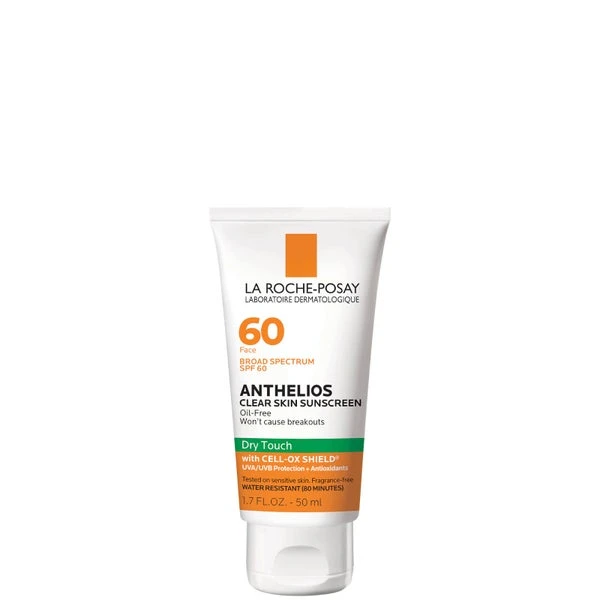 La Roche-Posay Anthelios Clear Skin Dry Touch Sunscreen SPF 60 provides broad-spectrum sun protection to oily, combination and acneic skin types. The dry-touch formula sets to a matte, weightless finish that doesn’t irritate skin or clog pores while the anti-shine complex absorbs excess oil throughout the day to prevent midday shine, even in hot, humid weather. Designed for daily wear, this weightless La Roche-Posay sunscreen protects your skin from aging UVA rays, burning UVB rays and damaging free radicals.