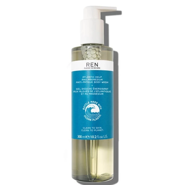 Refresh sluggish skin with REN Clean Skincare Atlantic Kelp and Magnesium Anti-Fatigue Body Wash; the award-winning cleanser now housed in a 100% recycled bottle, with 20% reclaimed ocean plastic.