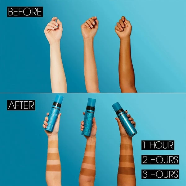 Wait just one hour before showering for a light sunkissed glow, two hours for a medium golden tan, or leave on for up to three hours for a deeper, darker bronze.