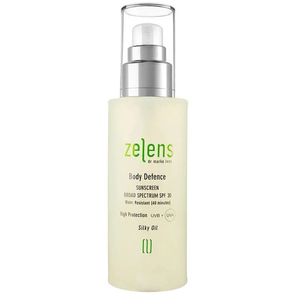 Protect skin from head to toe with the Zelens Body Defence SPF30 Sunscreen; a silky sunscreen oil that shields skin from damaging rays with broad-spectrum UVA/UVB protection.